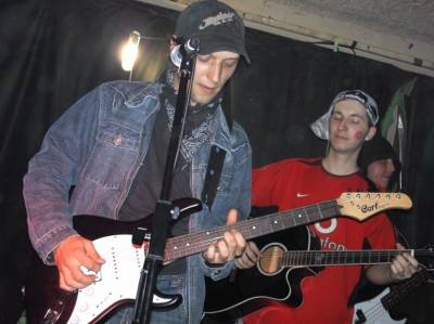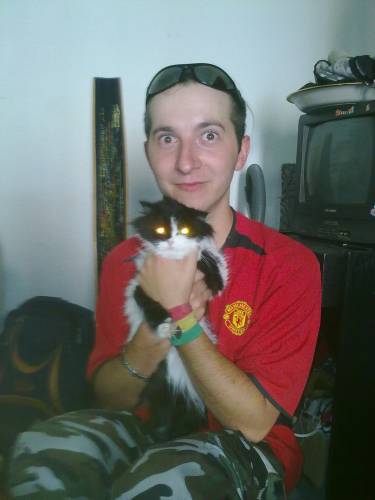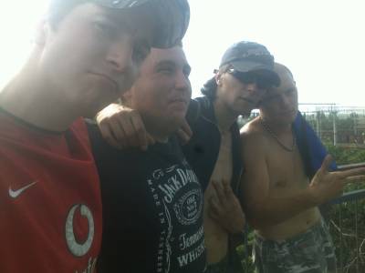 | Всем привет!=)если кому интересно то вот пару фото моих(я в красной футболке если что )На фотке я со своей командой(играем рок,рэп и все такое) я и котодьявол с друганом из Москвы